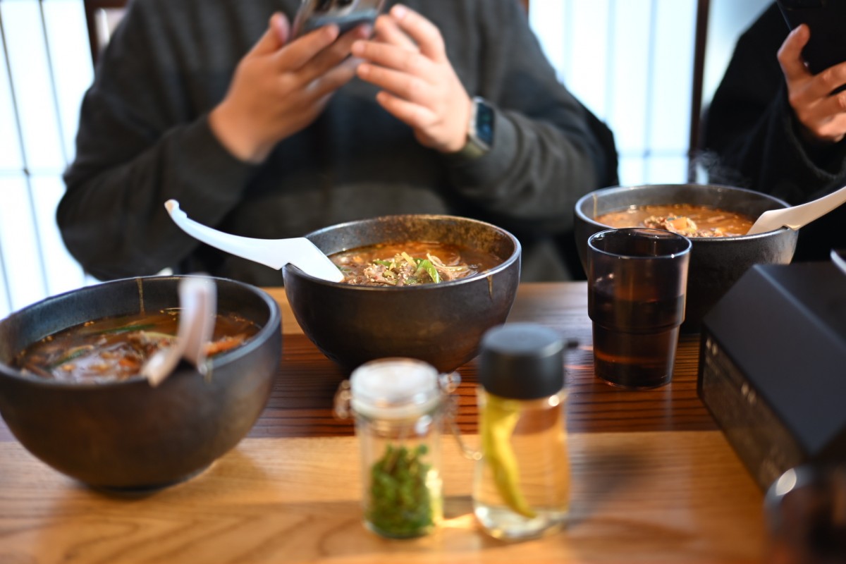 お昼は友人のAちゃんとSちゃんと肉唯のランチへ。温麺はスープがさらっとのみやすく、体がぽかぽか、青唐辛子を入れるとより爽やかで、どこの温麺とも似ていない〜、ここでしか味わえない〜と思いながら、ちゅるちゅるちゅると麺をすすったのでした。