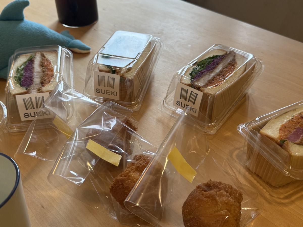 お昼ごはん、SUEKIをwoltした。ベジカツサンドと迷ったけど、今日はベジタブルサンド。赤い大根(?)のカツが甘くておいしい。ひとつひとつ具材もおいしい。パンもおいしい。単純に足したら3になるのを、5や10にできるのが飲食店のすごいところだなあとおもう。アンダギーも食べた。