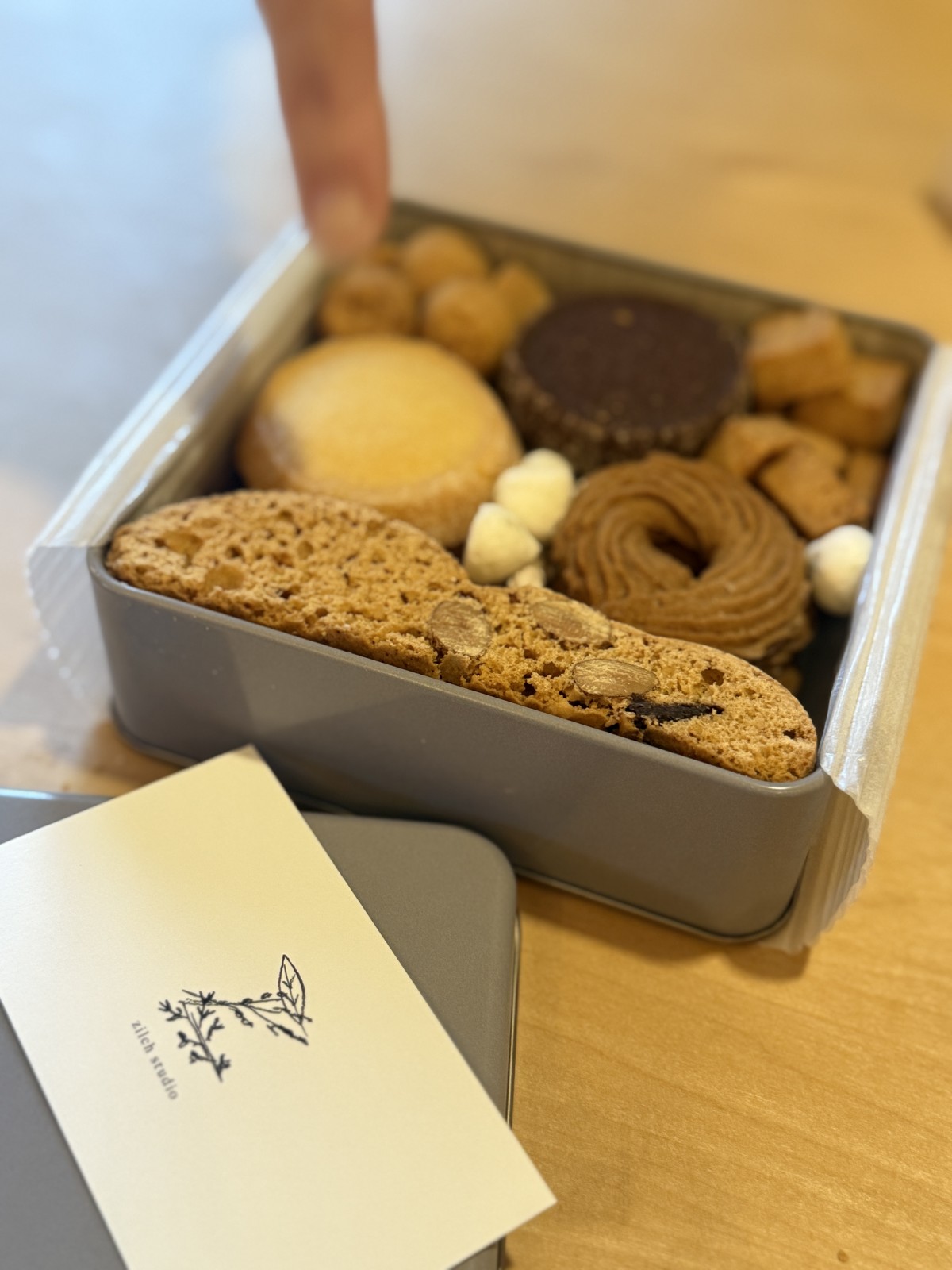 今日はお打ち合わせがたくさんあった日だった。みんなで広げて、整理して、眺めて、また広げてを繰り返して、脳みそがふよふよになった。お昼すぎにチセに戻り、先週末青森のイベントで買えたzilchi stadioさんのクッキー缶をコーヒーに合わせていただく。「そうそう、このくらいのサイズがちょうどいいよね」というメレンゲは小指の爪ほどで、レモングラスかな、なんだろうな、さっぱりとした香りがした。zilchiさんのビスコッティも大好き。土曜日、クッキー缶と「あ、ビスコッティも!」と2つ会計しようとしたら、「あのね、ビスコッティは入ってるよ」ってそっと教えてくれて、ふふと笑って。そんなにこにこしたお顔を思い出したりしながら、カリッと音を立てビスコッティをかじる。食べる、というより、かじるだよね、ビスコッティは。